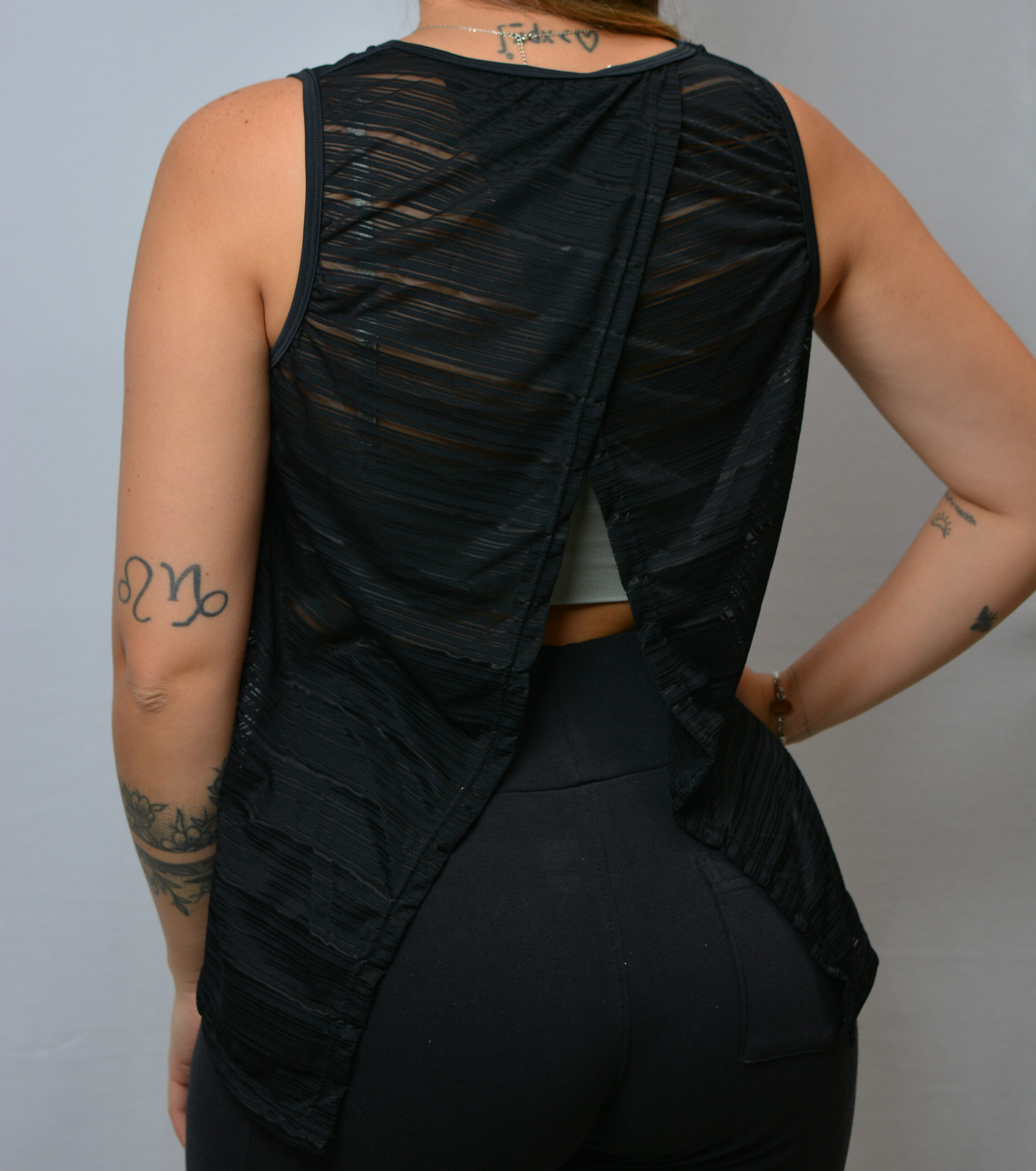 Musculosa deportiva en dry streech con espalda abierta.