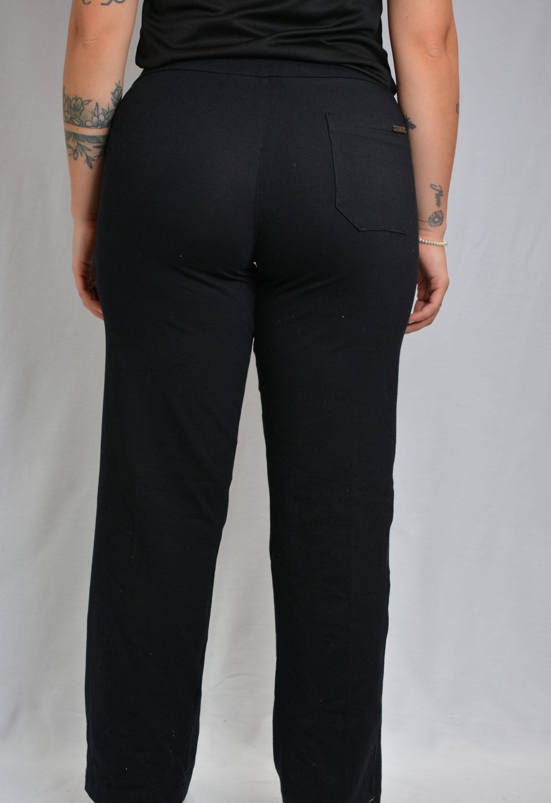 Hecho con tela de jersey con lycra, se vuelve un pantalón súper resistente que se estira y ajusta hasta adaptarse a la persona que lo viste sin traslucirse ni vencerse.
