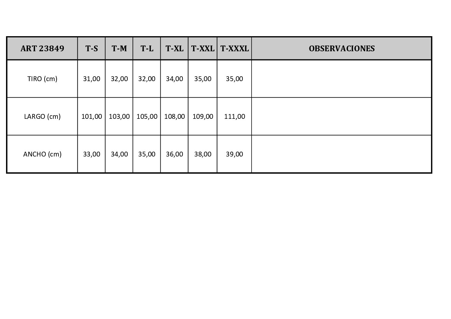 Disponible en talles S, M, L, XL, XXL Y XXXL.