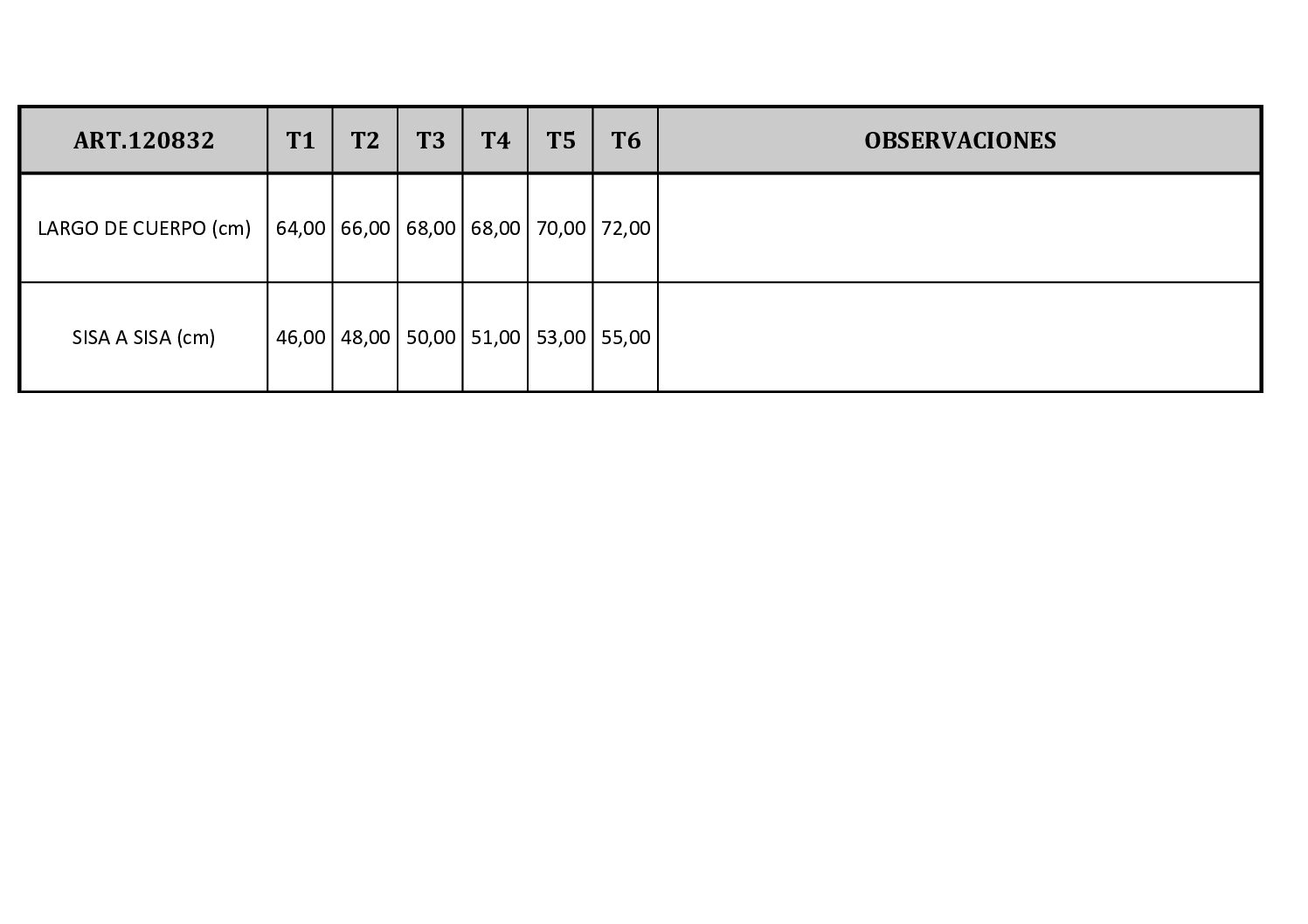 Disponible en talles 1, 2, 3, 4, 5 y 6.